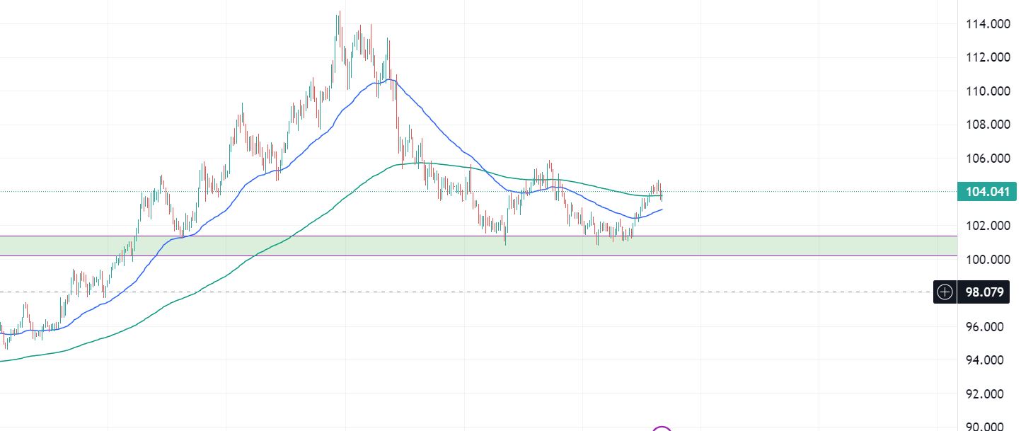Price moved away from that big 100-102 zone. Also managed to break above the 200 on Friday.